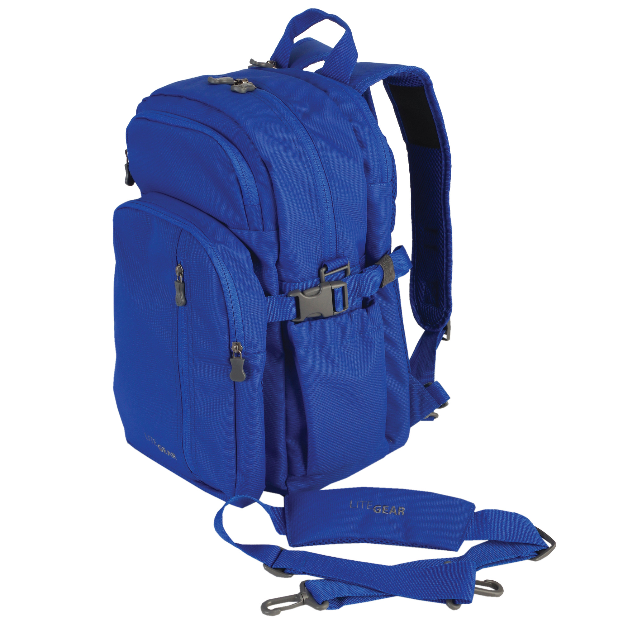 • Padded air-mesh back, harness and shoulder strap